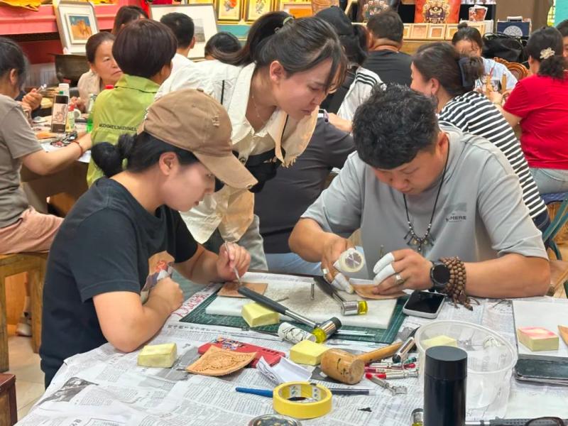 連日來,皮雕技藝培訓班也在如火如荼開展。自治區(qū)級非遺項目皮雕技藝傳承人溫都爾木現(xiàn)場指導學員制作傳統(tǒng)皮雕,并將皮雕技藝創(chuàng)新應用于錢包、腰帶等日常用品。“此次培訓吸引了30多名農牧民參與,我們不僅傳授傳統(tǒng)皮雕工藝,還教授阿拉善寶石鑲嵌技法,助力農牧民掌握增收新技能,實現(xiàn)技藝傳承與增收致富雙贏?!睖囟紶柲靖嬖V記者?! ?/p>