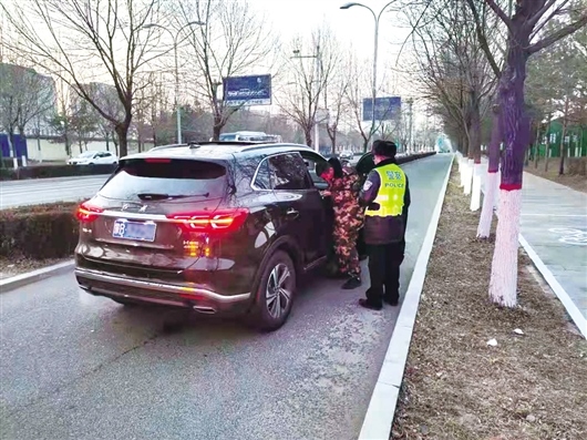 12月20日17時(shí)15分,九原區(qū)交管大隊(duì)第三警務(wù)區(qū)執(zhí)勤民警正駕駛警車在轄區(qū)巡邏清理違停車輛,當(dāng)巡邏至緯四路與經(jīng)二路交叉口時(shí),他們發(fā)現(xiàn)一輛黑色越野車停在緯四路非機(jī)動(dòng)車道內(nèi)且打著雙閃?!翱吹杰嚧蛑p閃燈,想著可能是車上的人有啥困難,我們就把警車開到附近,看到一名年輕男子正在車周圍焦急地來回徘徊,神情特別緊張?!眻?zhí)勤民警說。