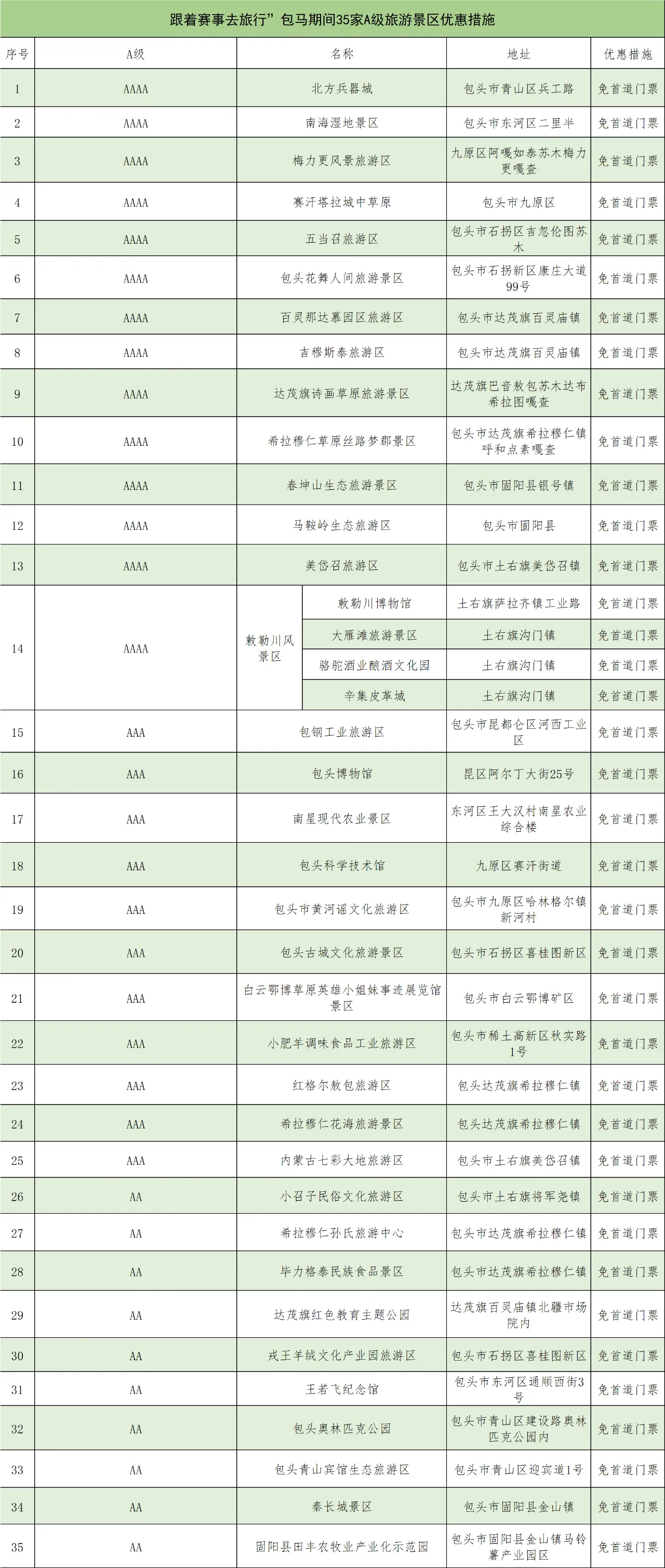 2025包頭馬拉松即將開(kāi)跑,這場(chǎng)備受矚目的賽事吸引眾多跑友齊聚包頭,用腳步丈量這座美麗的城市。馬拉松期間(5月18~19日),包頭文旅為參賽人員(憑號(hào)碼簿、中簽短信、手環(huán))推出全市35家A級(jí)旅游景區(qū)免收首道門票的優(yōu)惠政策,還將“上線”多項(xiàng)特色活動(dòng)。