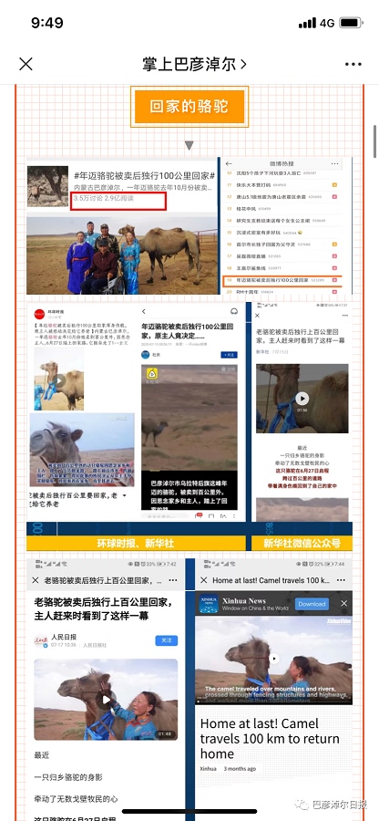 緊跟當(dāng)?shù)責(zé)狳c(diǎn)新聞,關(guān)注民生民情,打造了“輸入法爸爸”“聽音樂的羊”“蒙古舞課間操”“11歲男孩豬圈寫作業(yè)順手接生了7頭豬崽”等一批點(diǎn)擊量超千萬次的現(xiàn)象級(jí)融媒體“爆款產(chǎn)品”,視頻總點(diǎn)擊量超過1億。特別是“蒙古舞課間操”,2020年9月28日在央視一套《新聞聯(lián)播》播出,是全自治區(qū)首家在央視一套《新聞聯(lián)播》播出的黨報(bào)媒體。原創(chuàng)短視頻《一路跋山涉水,巴彥淖爾這只回家的駱駝感動(dòng)戈壁》先后登上微博熱搜、抖音熱榜,被央視新聞、人民日?qǐng)?bào)客戶端、新華社客戶端、騰訊新聞及全國(guó)各大媒體的微信、微博、抖音、快手爭(zhēng)相轉(zhuǎn)發(fā),僅微博話題閱讀量就達(dá)到了3億次。