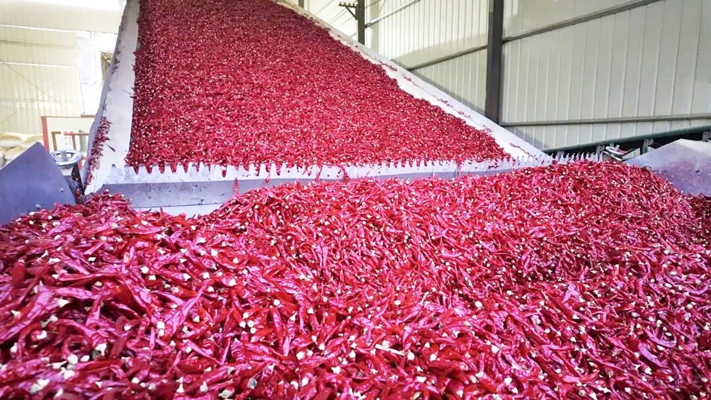 目前,臨河區(qū)共建成28條辣椒初加工生產(chǎn)線,涵蓋清雜、剪把、色選、烘干等全流程工藝,年加工能力可滿足10萬畝朝天椒加工需求,有效解決了以往農(nóng)戶面臨的“晾曬難、儲(chǔ)存難、賣價(jià)低”等難題,并通過加工環(huán)節(jié)的增值效應(yīng),實(shí)現(xiàn)辣椒產(chǎn)品身價(jià)倍增。