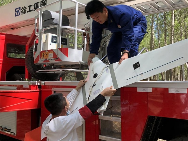 原來(lái),6月4日11時(shí)30分許,曹先生來(lái)到赤峰市寧城縣汐子鎮(zhèn)北山咀村準(zhǔn)備進(jìn)行水域測(cè)繪,航拍的過(guò)程中,價(jià)值30多萬(wàn)元的無(wú)人機(jī)突然消失了,曹先生四處尋找,才發(fā)現(xiàn)無(wú)人機(jī)被掛到了一棵很高的樹(shù)枝上,反復(fù)操作多次,無(wú)人機(jī)始終沒(méi)有動(dòng)靜,疑似被卡住了,一籌莫展的他撥打了報(bào)警電話。赤峰市消防救援支隊(duì)寧城縣哈河大街消防救援站接到報(bào)警后,立即出動(dòng)1輛32米登高平臺(tái)消防車及4名消防員趕赴現(xiàn)場(chǎng)進(jìn)行救助。