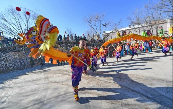 1月13日,演員們在呼和浩特市回民區(qū)莫尼山非遺小鎮(zhèn)表演舞龍。當日,“呼和浩特首屆非遺中國年”活動在莫尼山非遺小鎮(zhèn)開幕。本次活動將持續(xù)至3月8日,期間將在莫尼山非遺小鎮(zhèn)內組織開展開幕儀式、非遺項目展覽展示、傳統(tǒng)春節(jié)系列活動體驗等23項內容,將非遺文化與中國傳統(tǒng)文化相結合,傳承和創(chuàng)新中華優(yōu)秀傳統(tǒng)文化,豐富和滿足各族群眾精神文化生活需求。(內蒙古日報社融媒體記者 王磊 攝)