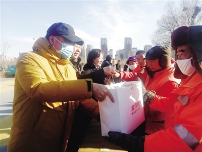 裴永志告訴呼和浩特晚報(bào)記者:“我們夫妻經(jīng)營著一家民營企業(yè),2017年冬季的一天,我出差辦事,當(dāng)天早上7點(diǎn)多就趕到了機(jī)場,天氣非常寒冷。到了機(jī)場,看到有幾名環(huán)衛(wèi)工人正在打掃路邊的衛(wèi)生,其中一名年齡較大的環(huán)衛(wèi)工人摘下手套拾撿路邊的煙頭等垃圾。我當(dāng)時(shí)非常感動(dòng),覺得環(huán)衛(wèi)工人平凡而又偉大,于是,就想著為他們做點(diǎn)什么。出差回來后,我把想法告訴了妻子,沒想到妻子也非常支持,最終,我們決定為環(huán)衛(wèi)工人捐贈(zèng)棉衣。之后便與賽罕區(qū)環(huán)衛(wèi)局的工作人員進(jìn)行對接。當(dāng)年,我們自籌了15萬元,購買了206件棉衣,捐贈(zèng)給了環(huán)衛(wèi)工人?!?/p>
