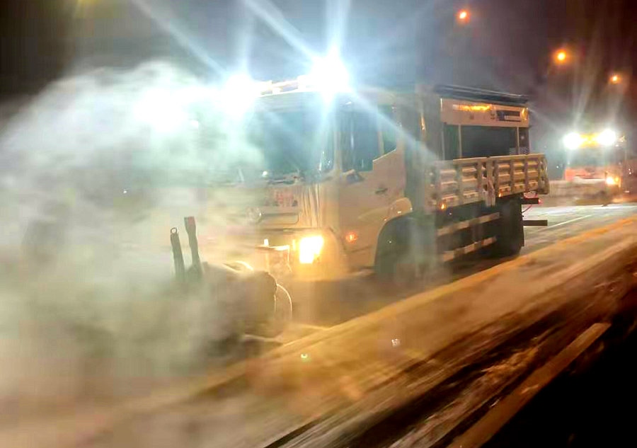北疆新聞網(wǎng)、北疆新聞客戶端消息(記者 劉嬙)12月5日晚,內(nèi)蒙古自治區(qū)首府呼和浩特出現(xiàn)降雪天氣。為防止道路積雪結(jié)冰,保障廣大市民和車輛出行安全,呼和浩特市和各區(qū)兩級環(huán)衛(wèi)部門以雪為令,聞雪而動,按照清雪工作預案,分工明確,責任到人,機械和人工清雪緊密配合,第一時間在市區(qū)道路實施機械及人工清雪作業(yè),全面清理道路積雪結(jié)冰,確保高標準、高質(zhì)量、高效率地完成清雪任務。