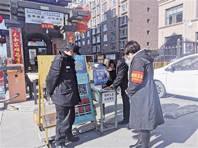 記者跟隨工作人員來到轄區(qū)地新街坊小區(qū),幾名社區(qū)工作人員正在小區(qū)門口負(fù)責(zé)疫情防控,“您好!請(qǐng)問您去哪棟樓?請(qǐng)下車登記信息。謝謝!”“請(qǐng)居民佩戴好口罩”……針對(duì)出入小區(qū)的人員,社區(qū)工作人員都一一仔細(xì)核查,宣傳防疫信息。“春節(jié)長(zhǎng)假過后,很多事都堆到今天了,所以格外忙。”阿拉善北路社區(qū)黨總支書記王海瓊說,阿拉善北路社區(qū)很多網(wǎng)格員都放棄了與家人團(tuán)聚的時(shí)間,主動(dòng)下沉到各個(gè)小區(qū)開展疫情防控工作,實(shí)行24小時(shí)輪崗制,做好外地返呼人員登記和掃碼工作,保證轄區(qū)防控安全。除此之外,還積極參與禁燃煙花爆竹、垃圾分類宣傳等工作,讓政策落到實(shí)處。