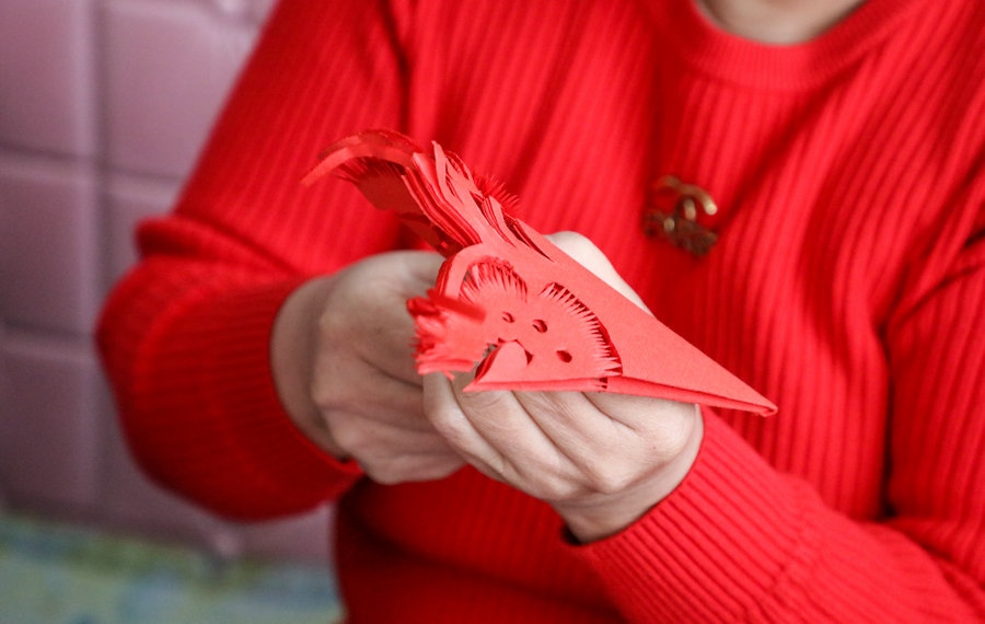 北疆新聞呼和浩特1月22日消息(記者 楊凈毓)春節(jié)將至,日前,在內蒙古呼和浩特市土默特左旗畢克齊鎮(zhèn),土默特剪紙非遺傳承人李還秀和姐妹們在炕頭上剪窗花,非遺傳承人孟素英手工捏制“龍”樣面塑,準備迎接“龍”年的到來。