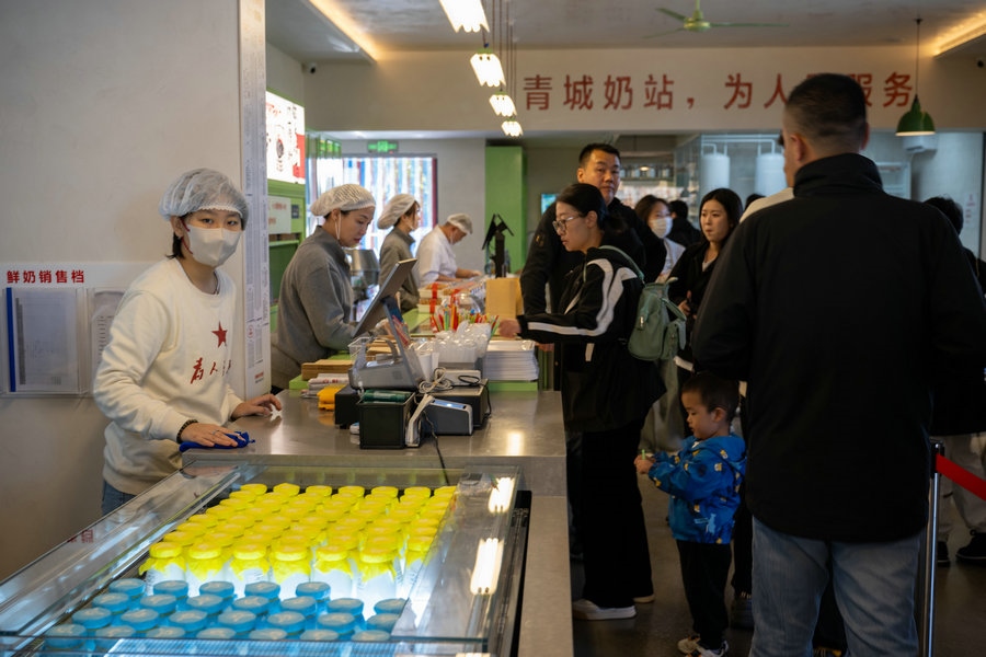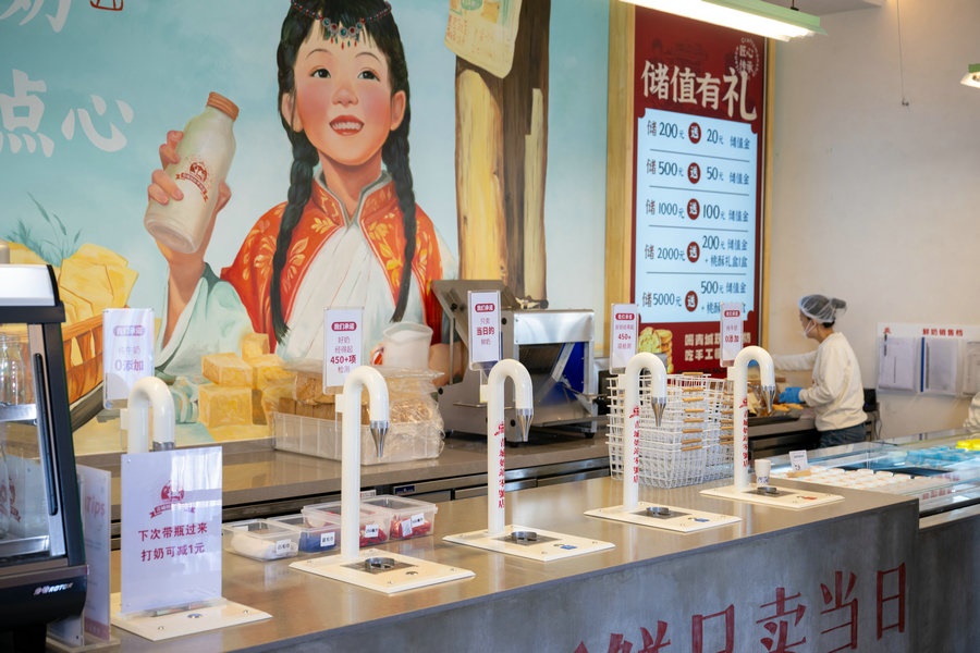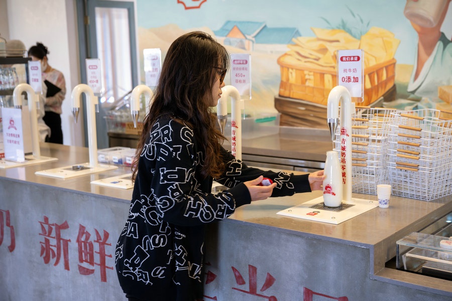 10月18日 呼和浩特青城奶站0號店 市民在享用牛奶