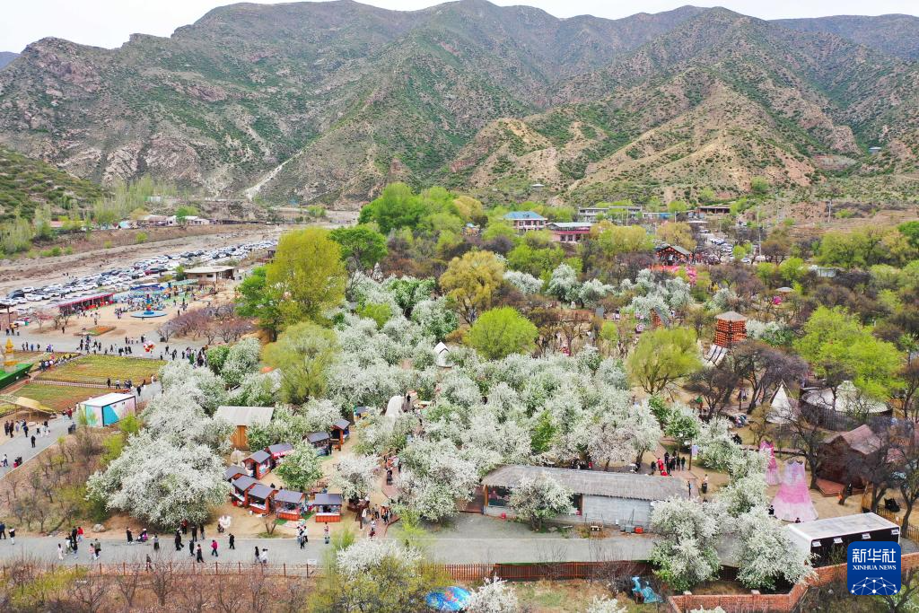這是5月4日拍攝的位于回民區(qū)東烏素圖村的烏素圖杏花谷景區(qū)(無人機(jī)照片)。