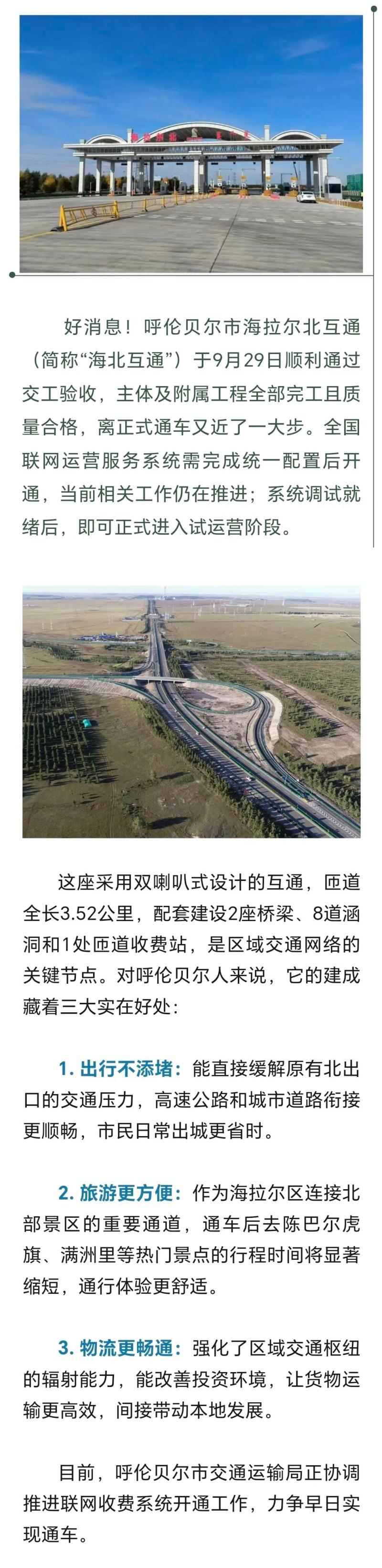 “海北互通”即將進(jìn)入試運(yùn)營階段!去滿洲里和陳巴爾虎旗等地行程縮短