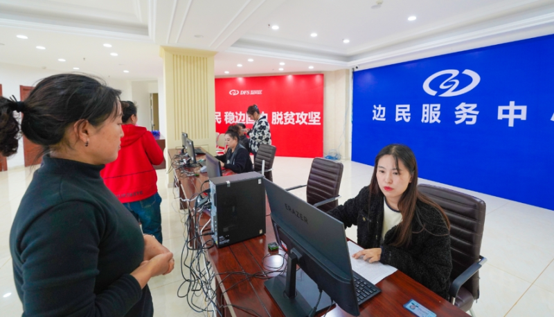 圖為邊民在滿洲里中俄互市貿(mào)易區(qū)進(jìn)行交易申報。