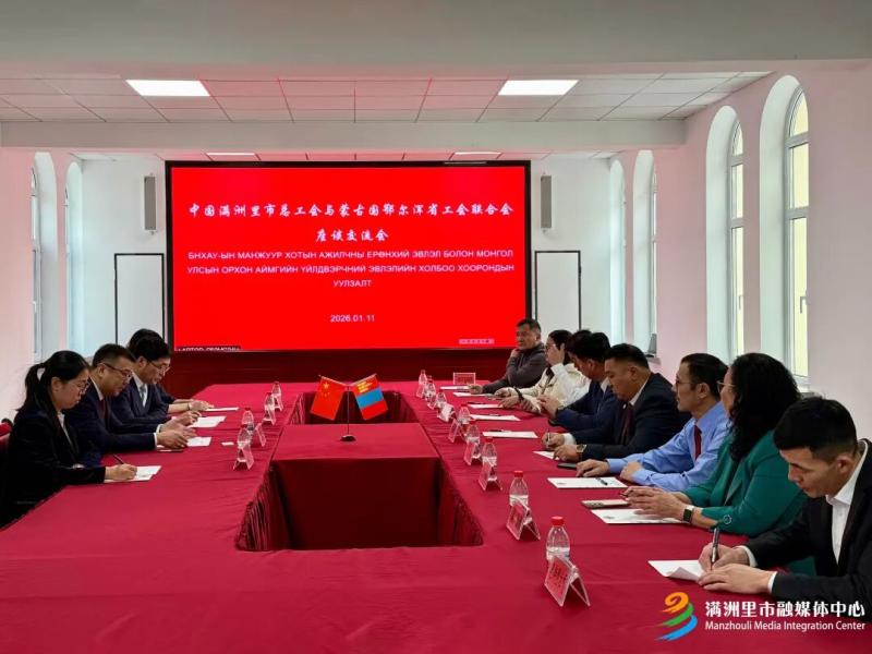 1月11日,滿洲里市總工會與蒙古國鄂爾渾省工會聯(lián)合會座談交流會舉行。雙方圍繞工會工作經(jīng)驗(yàn)互鑒、跨境職工服務(wù)合作等議題深入交流,共話友誼、共謀發(fā)展。