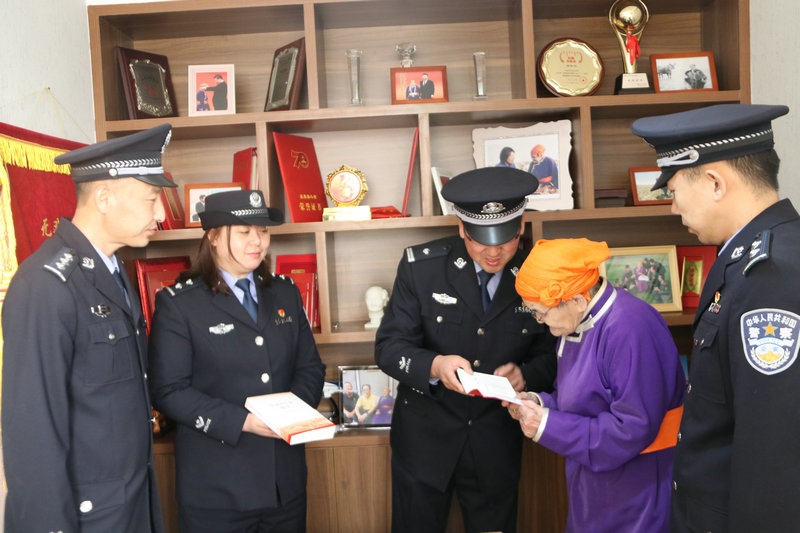 5月6日上午,民警們手捧鮮花來到都貴瑪老人家。一進(jìn)家門,便為都貴瑪老人送上了節(jié)日的祝福。民警們與都貴瑪老人嘮起了家常,詳細(xì)詢問老人的身體狀況和生活情況。大家你一言,我一語,聊著聊著,就談到了當(dāng)前開展的黨史學(xué)習(xí)教育。民警們把自己的學(xué)習(xí)體會和收獲一一向都貴瑪老人作了匯報。都貴瑪老人說,自己也通過觀看《新聞聯(lián)播》了解到國家十四五開局之年和全黨開展黨史學(xué)習(xí)教育的相關(guān)內(nèi)容。特別是看到民警們帶來的黨史書籍時,都貴瑪老人和大家講述了他們那一代人如何利用蒙文版書籍學(xué)習(xí)黨章黨史的故事,再次回顧了習(xí)近平總書記為她授予“人民楷?!眹覙s譽稱號獎?wù)聲r的自豪和激動。