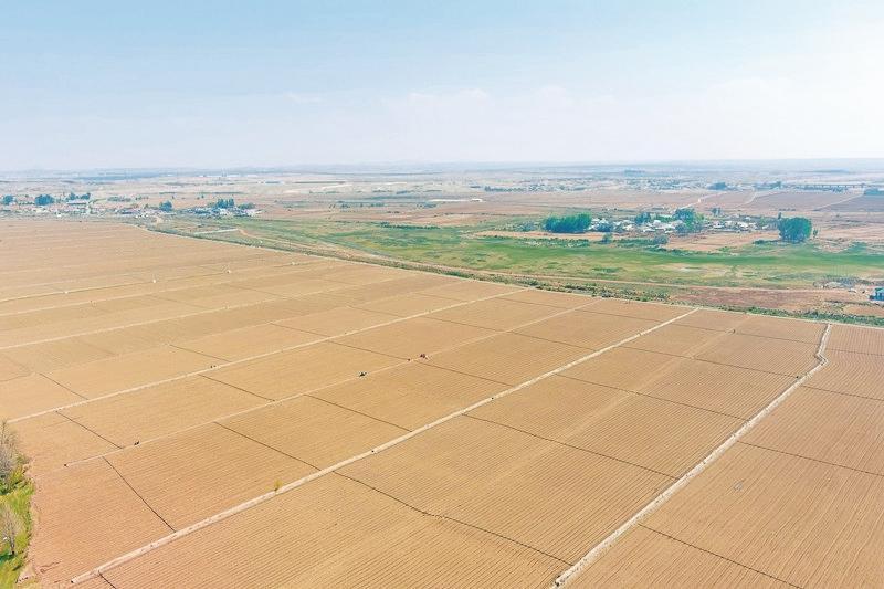 截至目前,海南區(qū)巴音陶亥鎮(zhèn)2.82萬畝農(nóng)田已經(jīng)種植完成95%以上,第一次澆水基本完成。(魯吟 攝)