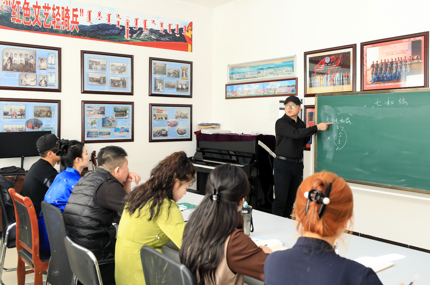 作為草原上的“紅色文藝輕騎兵”,何買拉蘇和隊員們年均開展惠民演出百余場,將新民樂《風馳草原》、好來寶《民族團結一家親》等原創(chuàng)作品化作“聽得懂、傳得開”的藝術語言。2023年寒冬,他們頂風冒雪為臥床老人演繹的“炕頭專場”,至今讓何買拉蘇難忘:“當老人含淚鼓掌時,我更深知烏蘭牧騎的根必須扎在農牧民心坎上?!薄 ?/p>