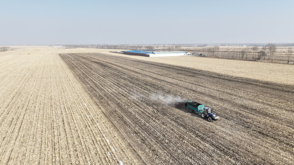 3月8日,農(nóng)民駕駛農(nóng)機(jī)在內(nèi)蒙古興安盟扎賚特旗音德爾鎮(zhèn)巨寶村一處農(nóng)田中拋撒有機(jī)肥(無人機(jī)照片)。驚蟄節(jié)氣后,內(nèi)蒙古興安盟扎賚特旗各項備耕工作有序推進(jìn)。扎賚特旗是我國重要的產(chǎn)糧大縣,2024年糧食總產(chǎn)量達(dá)49.5億斤。(新華社記者 貝赫)