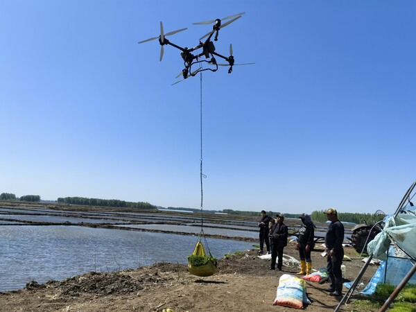 好力保鎮(zhèn)是興安盟大米的核心產(chǎn)區(qū),今年水稻種植面積達(dá)12.7萬畝,插秧任務(wù)重。為提高春耕效率、降低勞動強(qiáng)度,當(dāng)?shù)卣e極引導(dǎo)農(nóng)戶引入無人機(jī)運苗技術(shù)。這些經(jīng)過專門改裝的無人機(jī),配備了先進(jìn)的定位系統(tǒng)和載重設(shè)備,一次能吊運10至12盤秧苗,每天可完成近100畝地的插秧運苗任務(wù)。而且,它們能夠突破田埂、溝渠的限制,在復(fù)雜地形的稻田里自由作業(yè)。