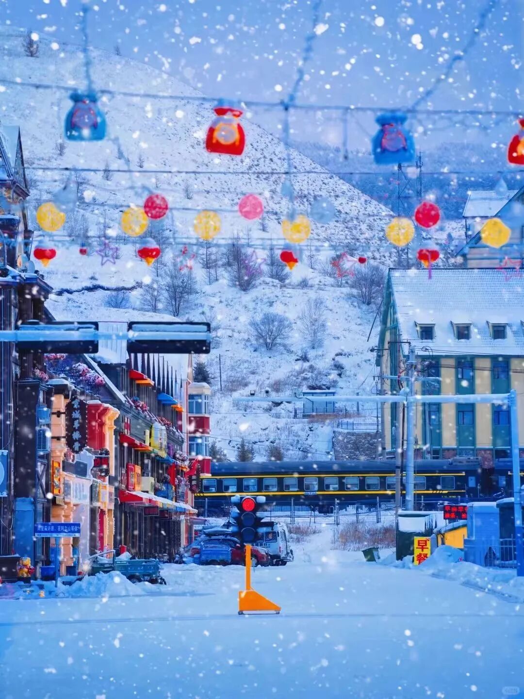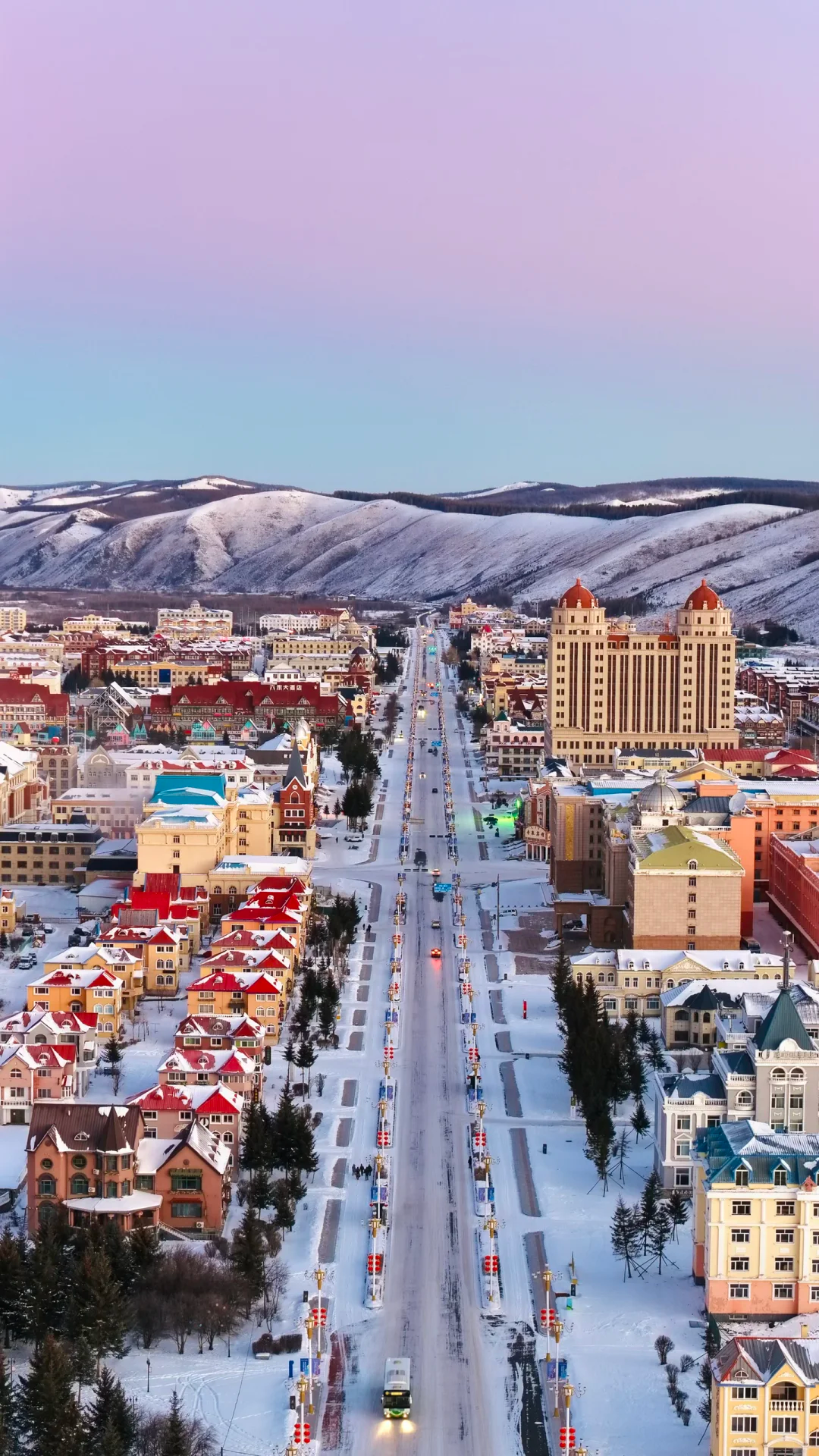 登上白狼峰觀景臺(tái),俯瞰一望無(wú)際的林海雪原,夕陽(yáng)西下時(shí),整片雪原被染成溫柔的金色,寒風(fēng)掠過(guò),雪花漫舞,這一刻的壯闊,足以治愈所有煩惱。走進(jìn)阿爾山雪村,木刻楞房頂著圓滾滾的“雪蘑菇”,紅燈籠在白雪中搖曳,晚上燈光一亮,暖黃色的光灑在雪上,感覺(jué)自己在童話里 。