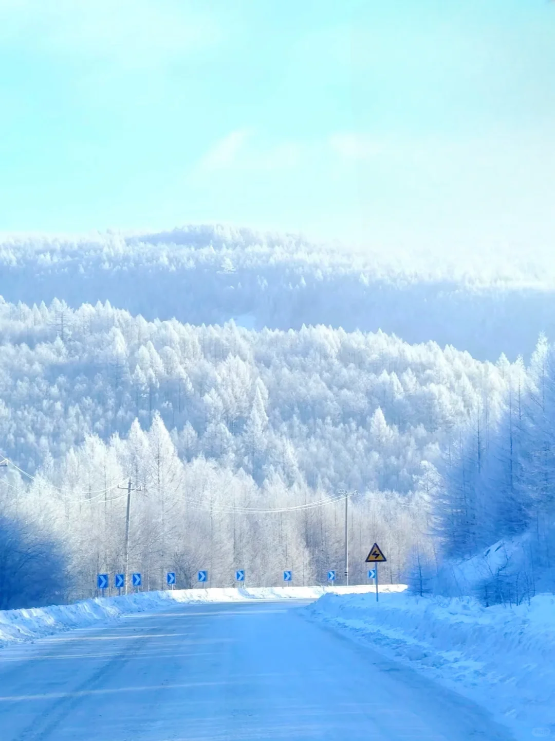 阿爾山的每一處,都是冰雪童話的實(shí)景片場(chǎng)。嶺點(diǎn)畫廊的百里霧凇長(zhǎng)廊,是天然的攝影棚,清晨氣溫最低時(shí),每一根枝條都裹著晶瑩的冰晶,陽(yáng)光穿過(guò)林海,灑下碎金般的光,無(wú)論是專業(yè)相機(jī)還是手機(jī),隨手一拍都是氛圍感大片,定格專屬你的極寒浪漫。