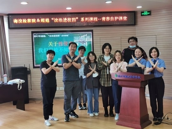 北京市海淀區(qū)人民檢察院與北京超越青少年社工事務(wù)所聯(lián)合開(kāi)展“法治進(jìn)校園”系列活動(dòng),為同學(xué)們講解青春自護(hù)知識(shí)。北京超越青少年社工事務(wù)所供圖