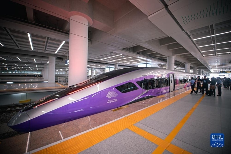復(fù)興號亞運(yùn)智能動(dòng)車組開啟首次試乘。