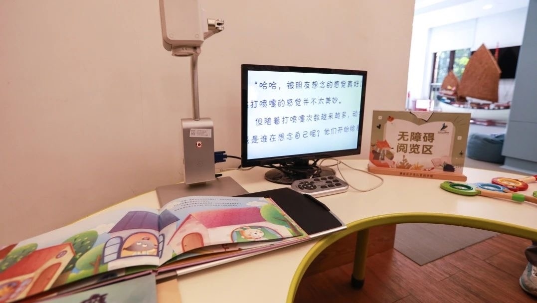 經(jīng)整改,圖書館各在一樓和三樓設(shè)有無障礙閱覽區(qū),增配大字版圖書和手指點(diǎn)讀發(fā)聲書,配置盲人專用電腦助視器、盲文點(diǎn)字顯示器、盲文有聲讀書機(jī)和放大鏡。打造有聲閱讀文化體驗(yàn)陣地“數(shù)智圖書館”,視障讀者只需使用數(shù)智耳機(jī)觸碰感應(yīng)相應(yīng)書卡和書籍,就能輕松接觸到千本好書的精華內(nèi)容,方便快捷地享受與普通人同等的閱讀權(quán)益。圖書館還設(shè)有無障礙通道、無障礙衛(wèi)生間、無障礙電梯,為視障、腿部殘疾等特殊人群提供安全便利全方位的出入保障。