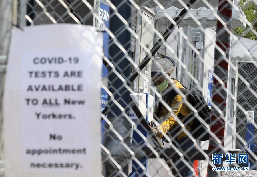 6月10日,一名男子走進(jìn)美國紐約一處新冠檢測點(diǎn)。新華社記者王迎攝
