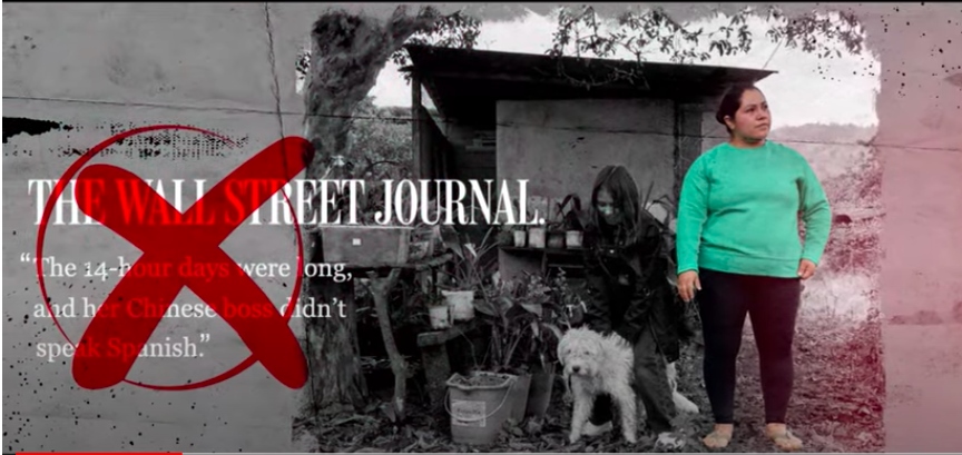 《華爾街日?qǐng)?bào)》在文章中提到厄瓜多爾科卡科多-辛克雷水電站附近兩名當(dāng)?shù)厝耍瑢?duì)她們的話語(yǔ)斷章取義,以此暗示讀者,當(dāng)?shù)厝恕皩?duì)中國(guó)企業(yè)心懷不滿”以及中國(guó)公司“強(qiáng)迫當(dāng)?shù)貑T工加班且工作環(huán)境惡劣”。