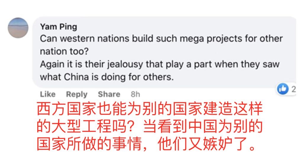 網(wǎng)友亞姆·平說(shuō):“西方國(guó)家也能為別的國(guó)家建造這樣的大型工程嗎?當(dāng)看到中國(guó)為別的國(guó)家所做的事情,他們又嫉妒了。”