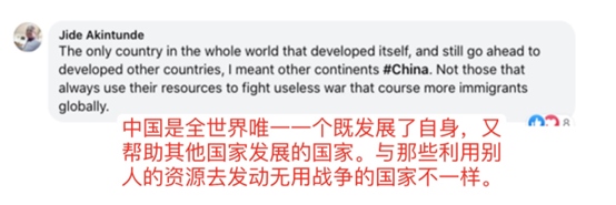 網(wǎng)友盧克蒙·奧拉德潑·法布恩米說(shuō):“撒謊者已經(jīng)被指出來(lái)了,他們批評(píng)中國(guó)制造的一切,但被人發(fā)現(xiàn)他們的指責(zé)毫無(wú)根據(jù)。中國(guó)干得漂亮。”