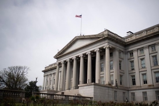 這是2020年3月27日在美國首都華盛頓拍攝的美國財(cái)政部大樓。(新華社記者劉杰攝)