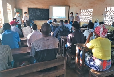 在幾內(nèi)亞比紹巴法塔,當(dāng)?shù)剞r(nóng)民接受中國(guó)農(nóng)技組專家的培訓(xùn)。中國(guó)援幾內(nèi)亞比紹農(nóng)技專家組供圖