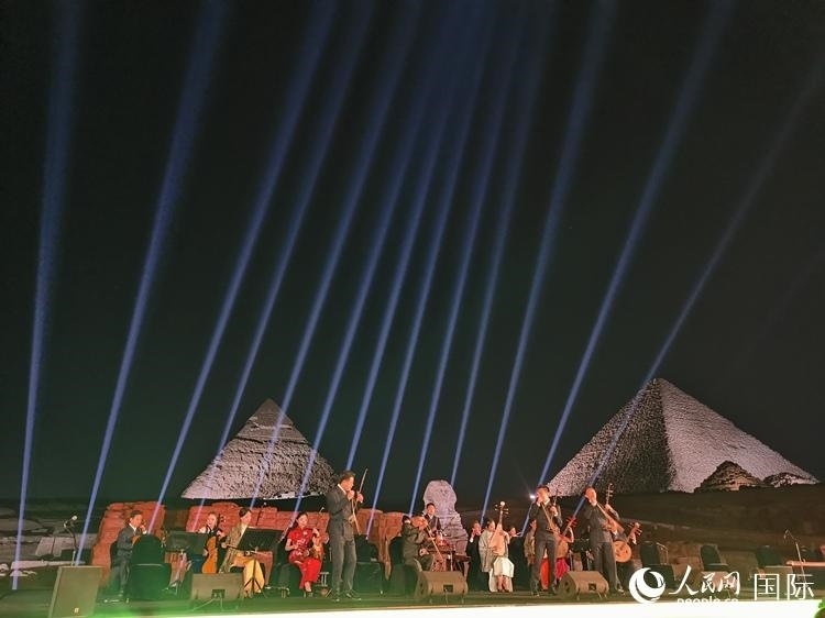 中埃兩國同為世界文明古國,人文領(lǐng)域合作空間大、潛力足。夜幕下的吉薩三大金字塔在燈光映襯下巍峨聳立,現(xiàn)場橫幅展示出“讓中埃友誼如尼羅河水奔涌向前”字樣,兩大古老文明此刻在金字塔上空相遇。音樂會(huì)的成功舉辦將成為中埃兩國文化合作新起點(diǎn)。