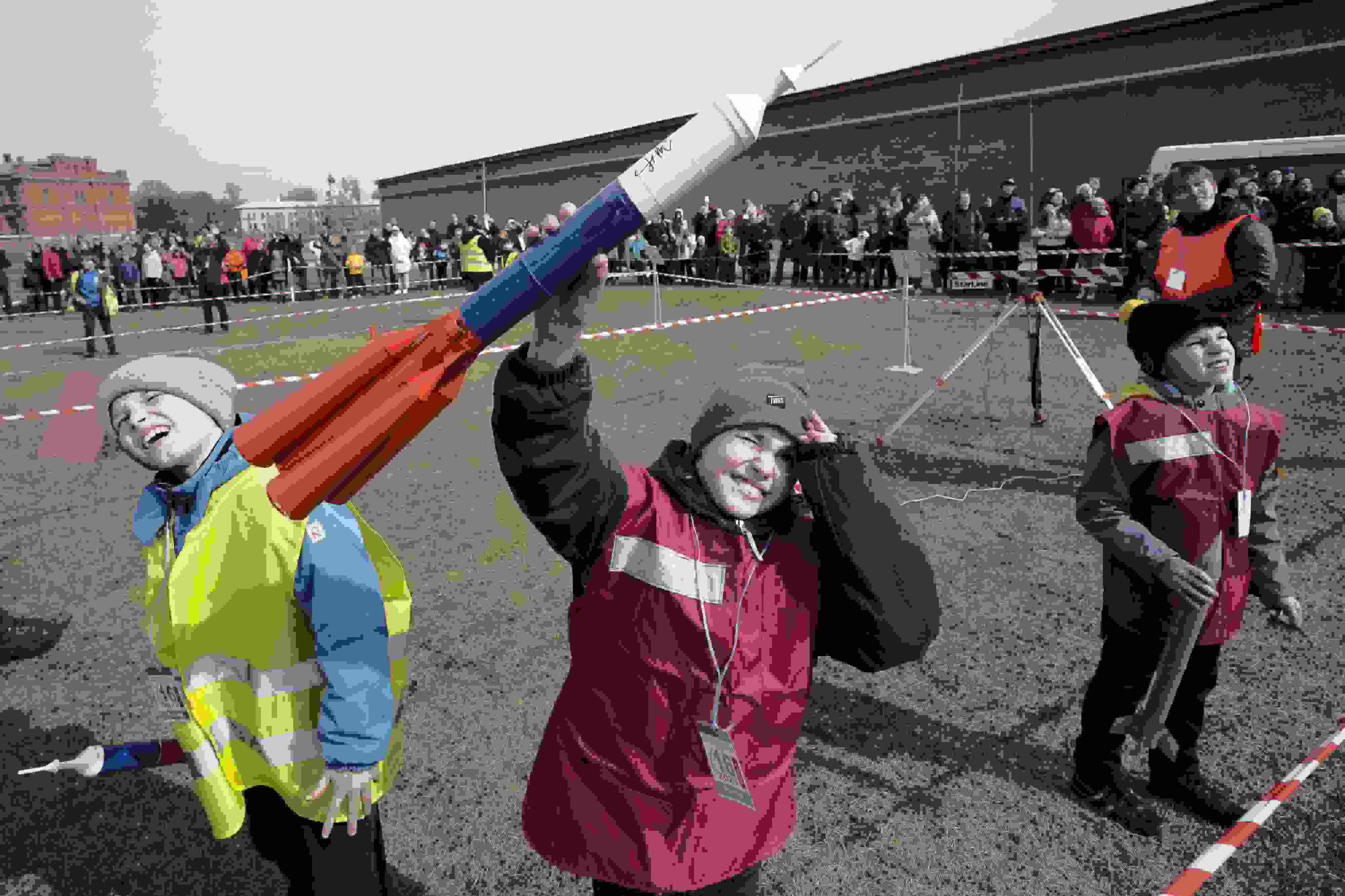 當地時間2023年4月16日,俄羅斯圣彼得堡,民眾發(fā)射火箭模型紀念人類首次太空飛行62周年。 視覺中國