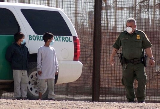 這張2021年3月27日在墨西哥華雷斯拍攝的照片顯示,兩名來自危地馬拉的移民兒童在跨越美墨邊境的里奧格蘭德河后,等待接受美國(guó)邊境巡邏隊(duì)人員的處理。新華社發(fā)(戴維·佩納多攝)