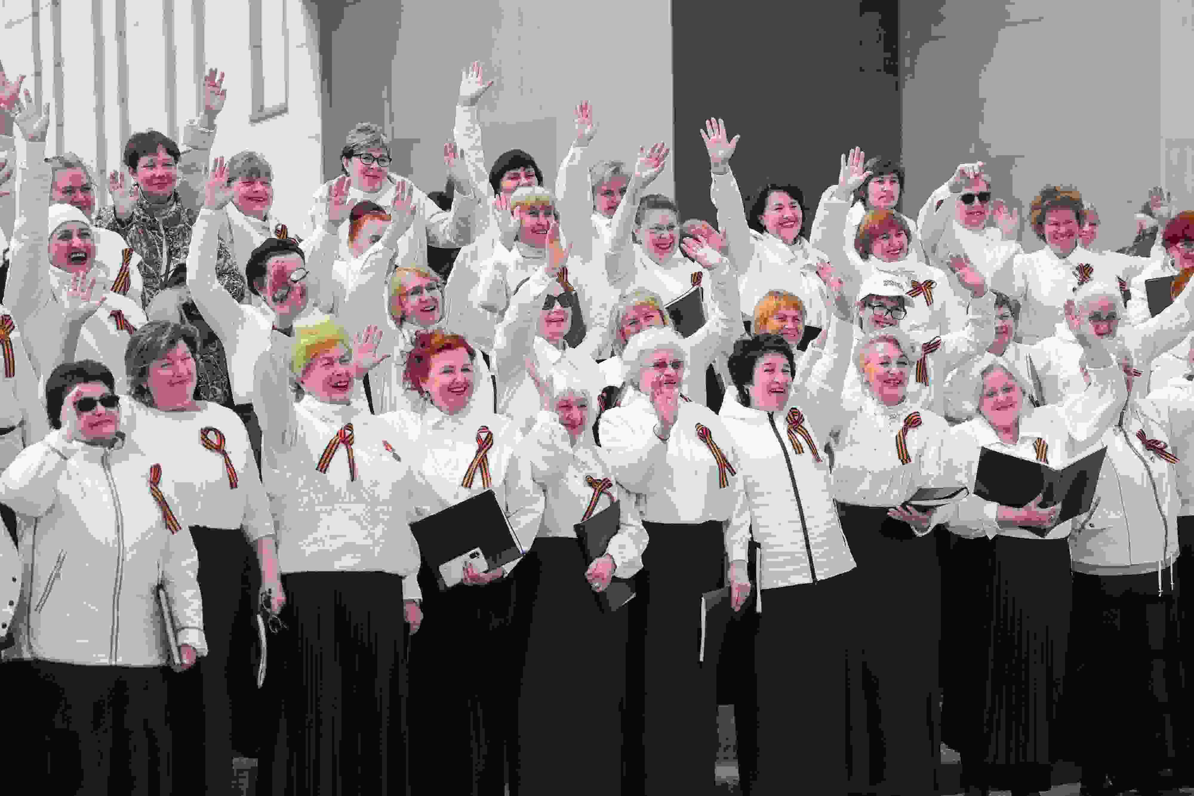 當(dāng)?shù)貢r間2023年5月8日,俄羅斯莫斯科,合唱團在紀念二戰(zhàn)勝利78周年的音樂會上表演。 視覺中國