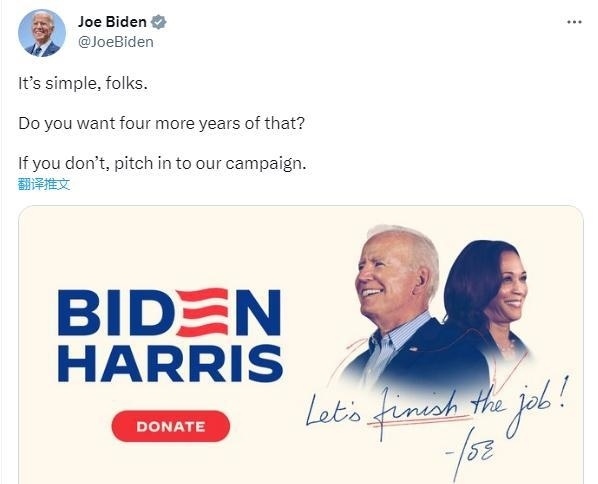 CNN注意到,在特朗普的直播結(jié)束后不久,美國(guó)總統(tǒng)拜登在社交媒體上發(fā)出了政治籌款呼吁,并配文稱,“很簡(jiǎn)單,伙計(jì)們。 你還想再那樣過四年嗎?如果你不喜歡,請(qǐng)參與我們的競(jìng)選活動(dòng)?!?/p>