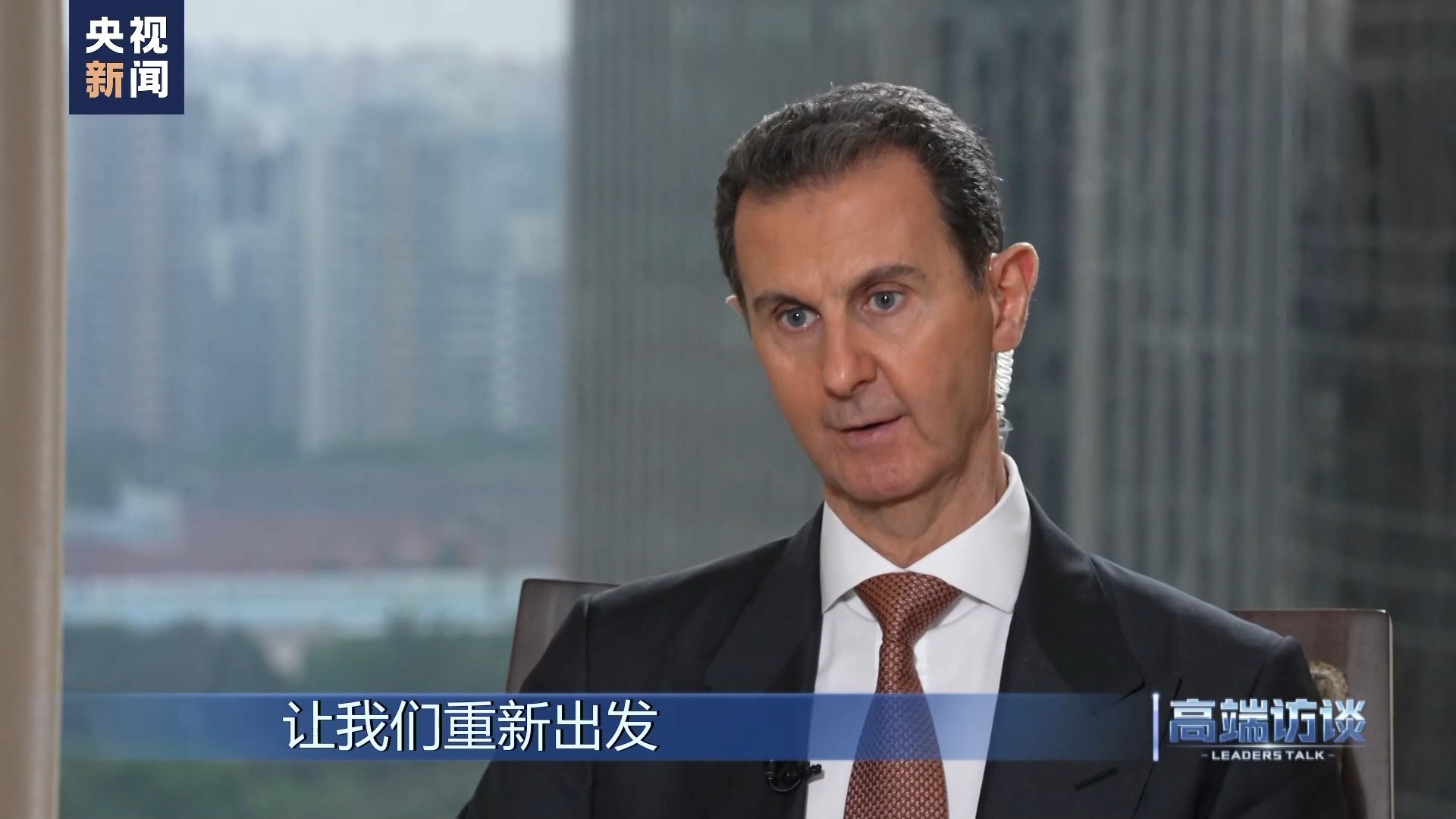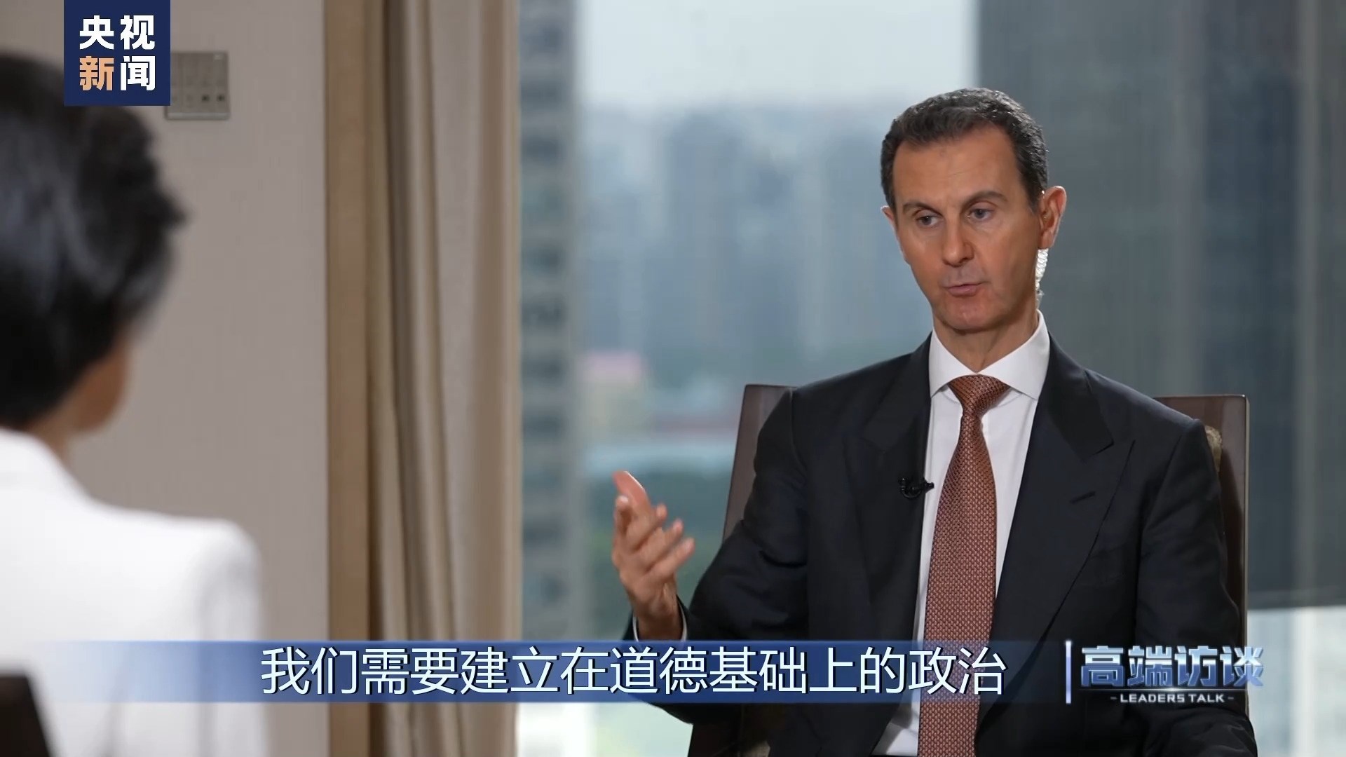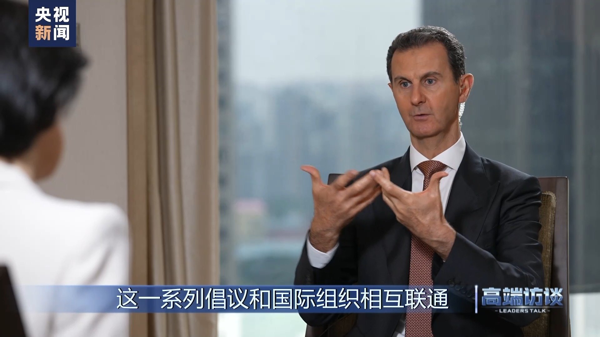 巴沙爾:感謝你給我機(jī)會(huì),通過你們頻道、你們節(jié)目向中國(guó)人民說這些話。我想向中國(guó)人民表示祝賀,祝賀你們過去幾十年取得的成就。事實(shí)證明,中國(guó)人民是偉大的人民。我不是嘴上說說,而是事實(shí)的確如此。我們祝愿中國(guó)實(shí)現(xiàn)國(guó)家愿景,在國(guó)際上,中國(guó)的愿景也是當(dāng)今世界大多數(shù)國(guó)家的愿景。謝謝你的采訪!