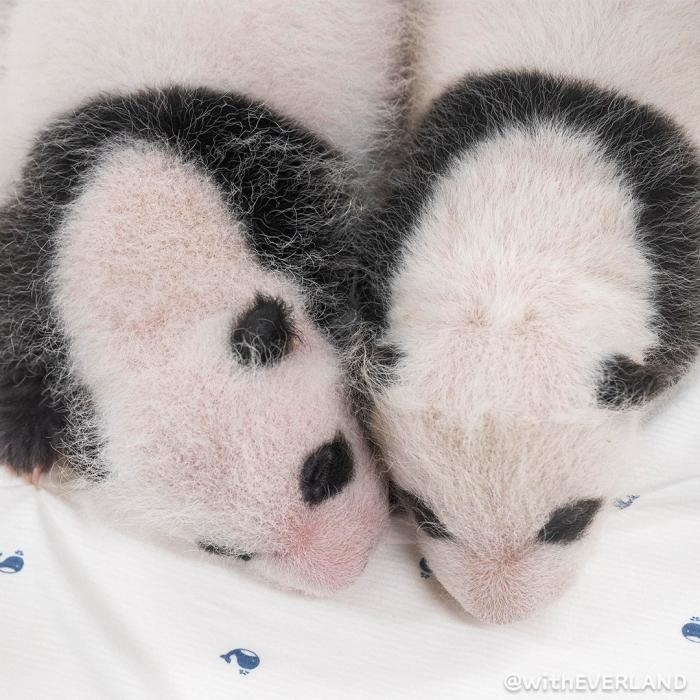 據(jù)報道,從公開的照片來看,這對大熊貓寶寶已開始慢慢長胖,眼睛、耳朵、肩膀、胳膊、腿周圍,顯現(xiàn)出獨特的黑色斑紋。