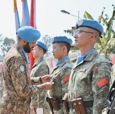 今年是中國赴剛果(金)維和任務(wù)20周年。日前,中國第二十六批赴剛果(金)維和部隊全體官兵被授予聯(lián)合國“和平勛章”,這是聯(lián)合國表彰維和人員的最高榮譽(yù)。