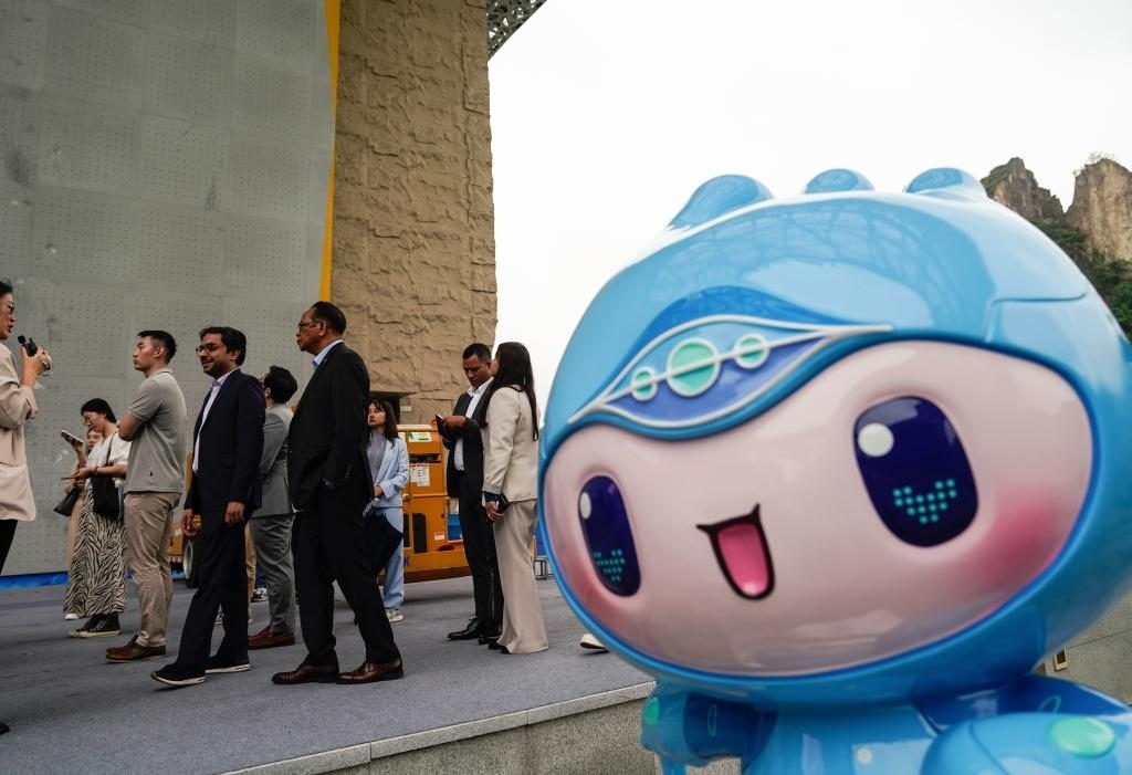 8月29日,駐華使節(jié)在紹興柯橋羊山攀巖中心參觀。新華社記者 韓傳號 攝