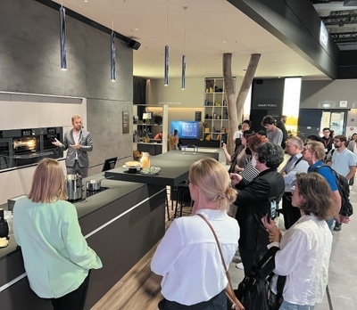 在2022年柏林國際消費電子展期間,參觀者在卡薩帝展臺前了解智能廚房設備。本報記者 李 強攝