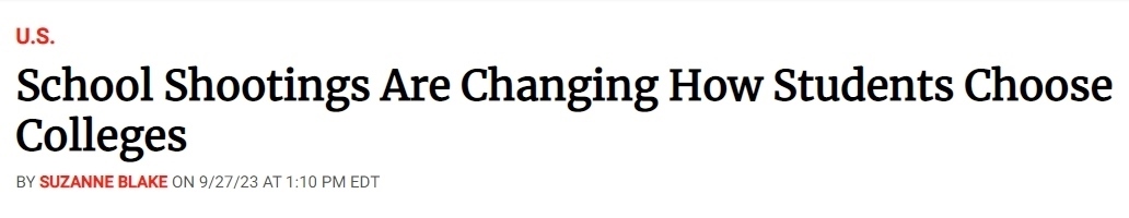 也是由于校園槍擊事件的日漸頻繁,美國學(xué)生選擇大學(xué)的方式也隨之發(fā)生變化。據(jù)美國《新聞周刊》(News Week)網(wǎng)站27日報(bào)道,僅在2023年,全美就發(fā)生了53起校園槍擊事件。“槍支暴力檔案”(Gun Violence Archive)的數(shù)據(jù)顯示,各類與槍支有關(guān)的死亡總共有3萬多起。