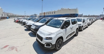 乘車(chē)從汽車(chē)船碼頭大門(mén)行至港口,記者看到,靠海的停車(chē)坪上,整齊排列著近6000輛正待出口或剛運(yùn)抵的小轎車(chē),其中不乏中國(guó)品牌,如比亞迪、奇瑞、江淮等。它們將從這里中轉(zhuǎn),運(yùn)往意大利、黎巴嫩、土耳其、阿爾及利亞等國(guó)。