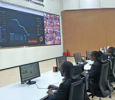 在肯尼亞內(nèi)羅畢快速路監(jiān)控中心,工作人員正在監(jiān)測(cè)車輛運(yùn)行狀況。鄭文嬌攝