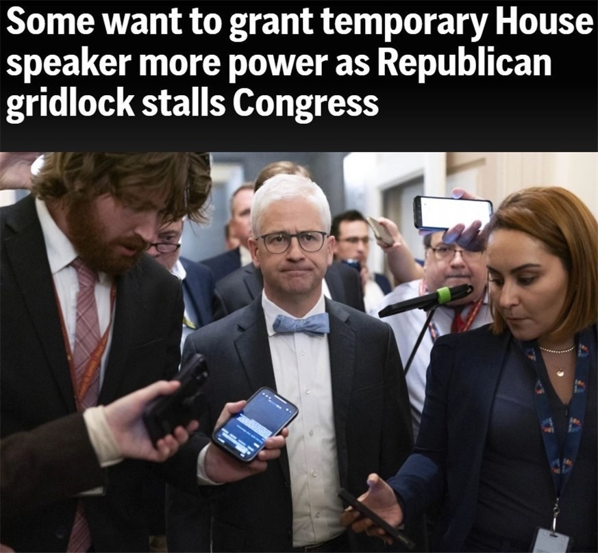 在此之前,為確保眾議院“正常履職”,有人提出當(dāng)務(wù)之急是擴大麥克亨利的職權(quán)。不過,一些共和黨議員對此并不感興趣,認(rèn)為在預(yù)算和其他重大政策方面,為臨時議長擴權(quán)并不是有效的做法。