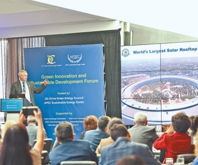 當(dāng)?shù)貢r間11月13日,由亞太經(jīng)合組織可持續(xù)能源中心和美中綠色能源促進會共同主辦的“綠色創(chuàng)新與可持續(xù)發(fā)展論壇”在舊金山舉行,與會嘉賓就清潔能源、綠色發(fā)展、共同應(yīng)對氣候變化等議題交流研討。本報北美中心分社 伊芙莉·妮可·梅菲爾德攝