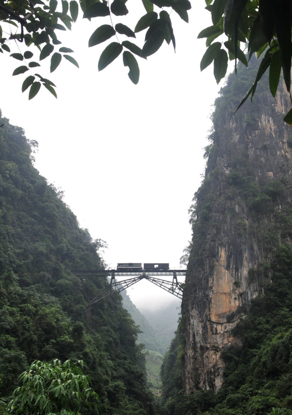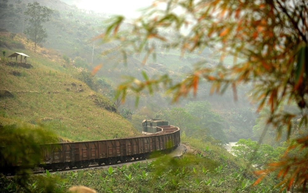 這是行駛在滇越鐵路云南省屏邊縣境內的貨運列車(2012年3月9日攝)。