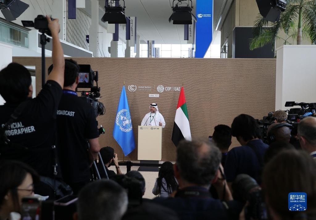 12月12日,在阿聯(lián)酋迪拜,COP28總干事馬吉德·蘇韋迪在新聞發(fā)布會上回答記者提問。新華社記者 王東震 攝