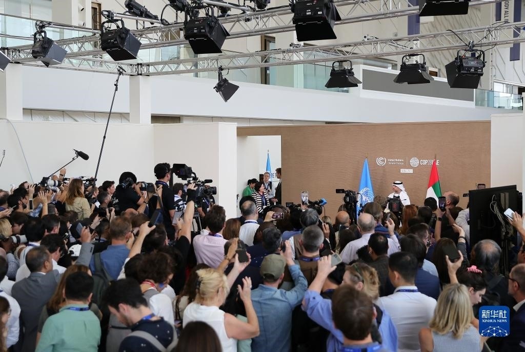12月12日,在阿聯(lián)酋迪拜,參會人員在聯(lián)合國氣候變化迪拜大會會場內(nèi)工作。新華社記者 王東震 攝